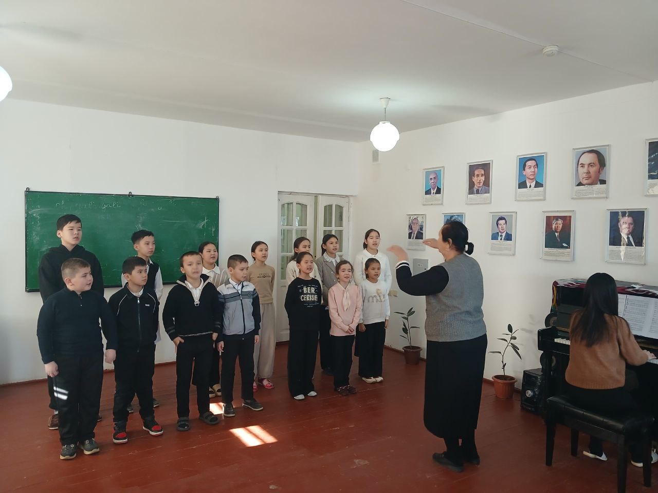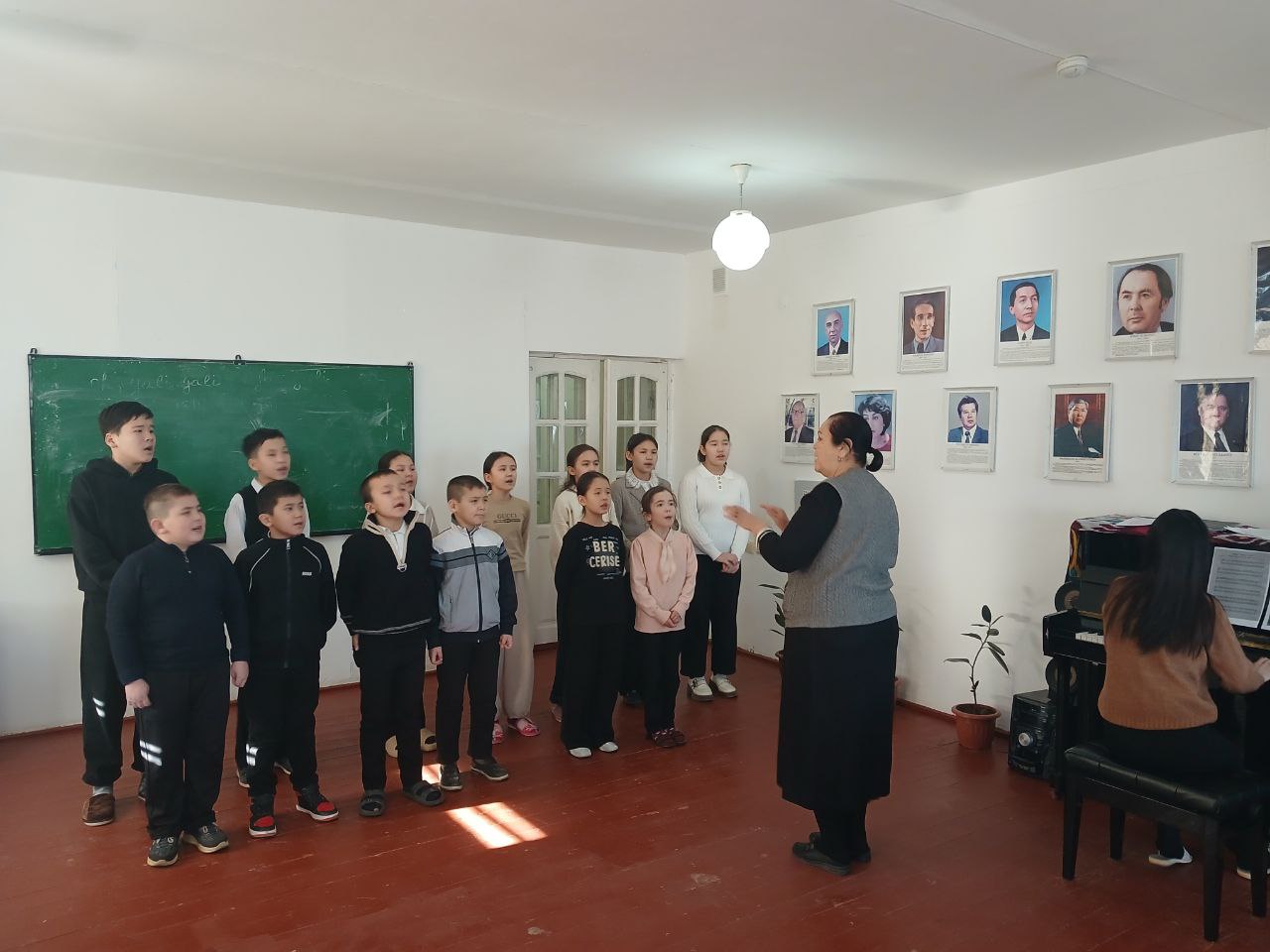 Qoñirat rayoni 10-sanli “Esemurat-jıraw” atındaǵı balalar muzıka hám kórkem óner mektebi teoriya pa’nleri xor klass oqıtıwshısı Kelimbetova Gulistan Bazarbaevna sabaģinan foto kòrinisler.